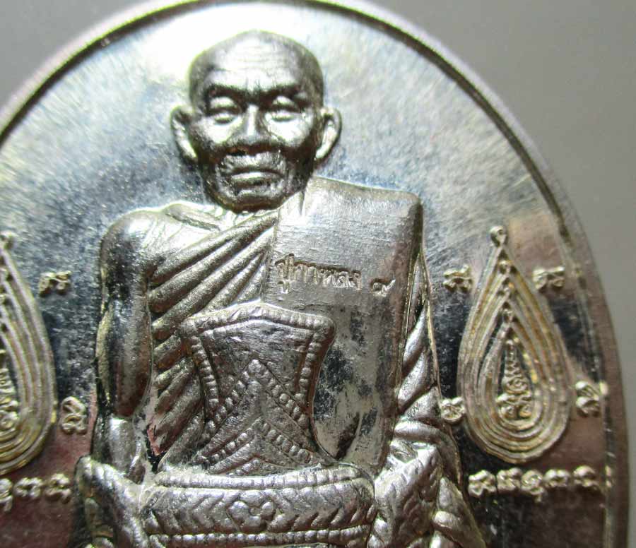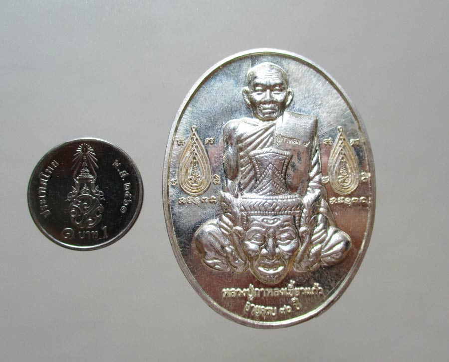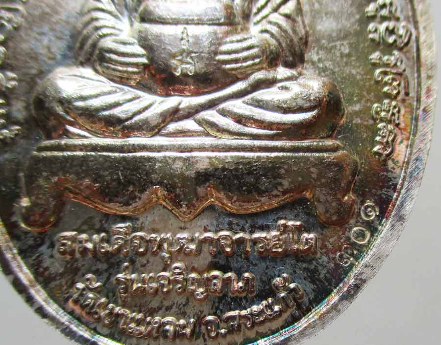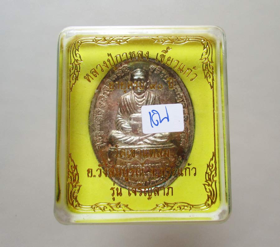 เหรียญเจริญลาภ หลังสมเด็จโตอุ้มบาตร หลวงปู่กาหลง เขี้ยวแก้ว วัดเขาแหลม อายุครบ 90 ปี เนื้อเงิน ตอกโค๊ต ตอกเลข สภาพสวย นอ นกล่องเดิม