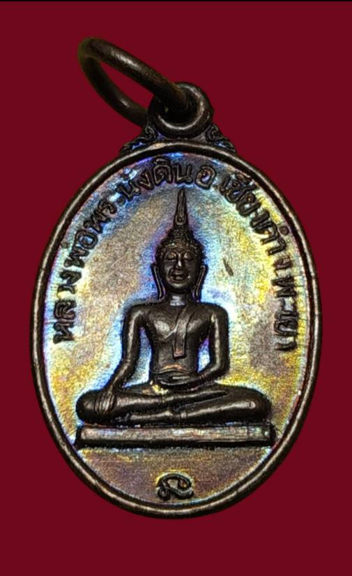 เหรียญหลวงพ่อพระนั่งดิน วัดพระนั่งดิน อ.เชียงคำ จ.พะเยา เนื้อทองแดงผิวรุ้ง สวยมาก เคาะแรกแดง |