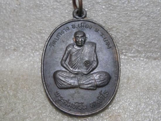 เหรียญหลวงพ่อรืน วัดนกงาง จ.ระนอง รุ่นแรก บล็อควงเดือนนิยม ปี 2519 เนื้อทองแดง ตอกโค๊ต ( มีจารเพียบ ) ผิวสวยๆ