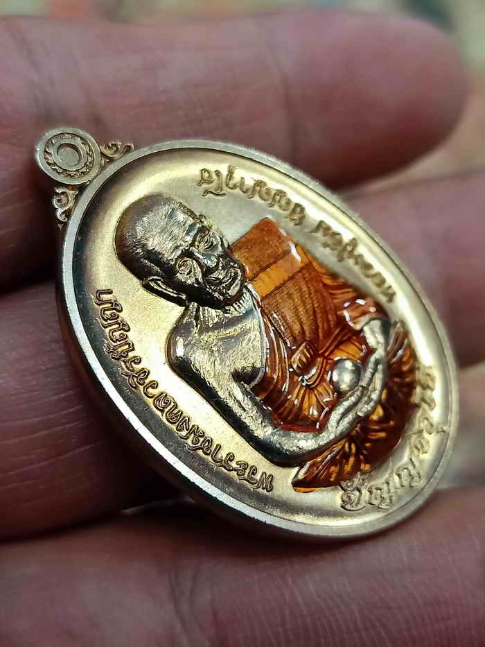 วัดใจ 100 เหรียญรวย 5 แผ่นดิน หลวงปู่อิ่ม วัดทุ่งนาใหม่ จ.นครศรีธรรมราช 2566 อัลปาก้าผิวนวะ ลงยาจีวร หมายเลข 3 กล่องเดิม