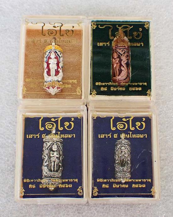 $เคาะแรกเบาวัดใจทีเดียว 4 องค์ค่ะ ตะกรุดอุดกริ่งไอ้ไข่ เสาร์ ๕ รุ่น เงินไหลมา ปี 2563 พิธีใหญ่ กริ่งดังกังวาน วัดพระมหาธาตุวรมหาวิหาร จ.นครศรีธรรมราช พร้อมกล่องเดิมค่ะ$