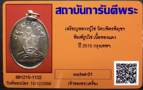 เหรียญหลวงปู่ไข่ วัดบพิตรพิมุขฯ เนื้อทองแดง ปี 2515 จ.กรุงเทพฯพร้อมกล่องเดิม