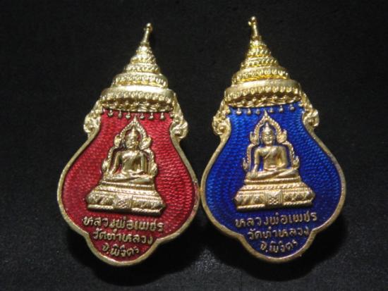 วัดใจเคาะเดียว........100.......เข็มกลัดกะไหล่ทองลงยา หลวงพ่อเพชร วัดท่าหลวง ปี 2529 จ.พิจิตร สวย รวม 2 เหรียญ |