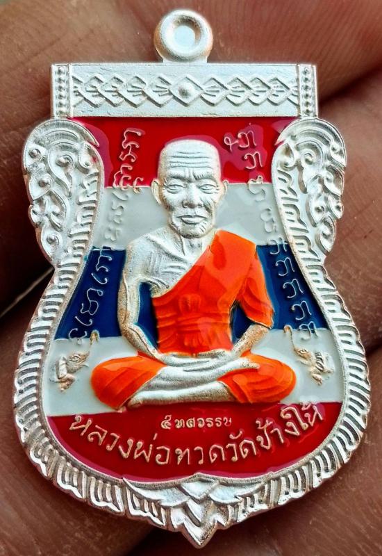 (33)หลวงพ่อทวด รุ่น 5 ทศวรรษ เลื่อนสมณศักดิ์ ปี 58 เนื้อกะไหล่เงินลงยาสีธงชาติลงยาจีวร ตอกนัมเบอร์ 195 พร้อมกล่องเดิม สภาพสวย |