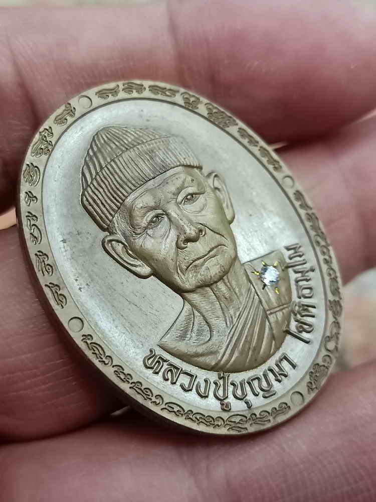 วัดใจ 100 เหรียญใส่หมวกรุ่นแรก หลวงปู่บุญมา สำนักสงฆ์เขาแก้วทอง จ.ปราจีนบุรี 2567 สนิมเขียวโบราณ ฝังพลอย หมายเลข 11 สร้าง 19 กล่องเดิม |