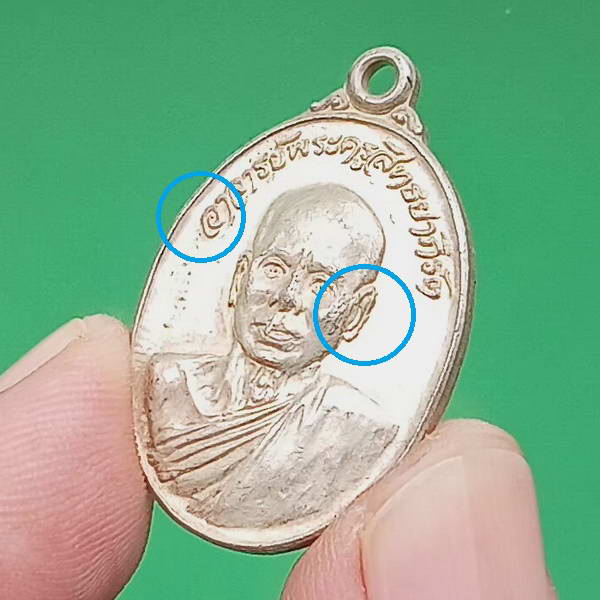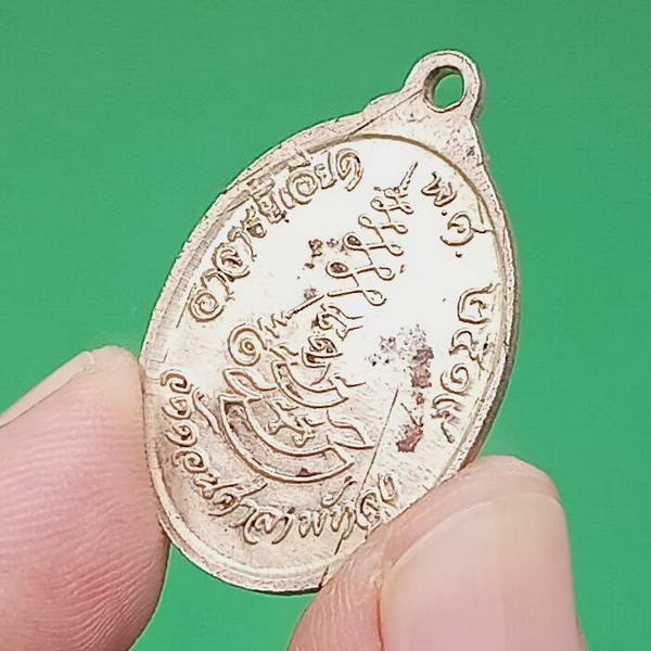 เหรียญอาจารย์เอียด วัดดอนศาลา ปี 2519 เนื้อทองแดงกะไล่เงิน สร้าง 2,000 เหรียญ บล็อก อ ไม่ขีด หูไม่กาง