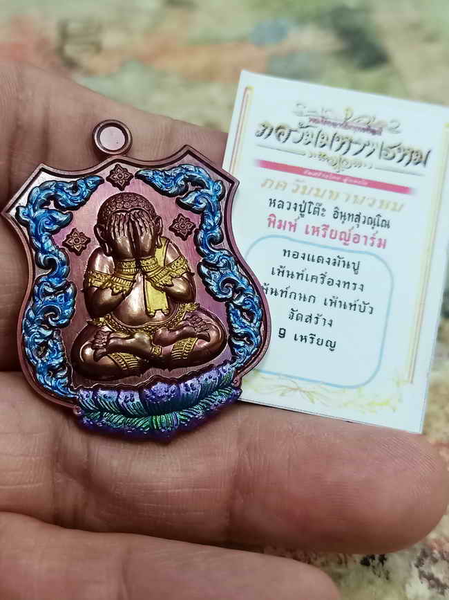 วัดใจ 150 พระปิดตาปั้มพุทธศิลป์ รุ่นภควัมมหาพรหม หลวงปู่โต๊ะ วัดถ้ำสิงโตทอง ราชบุรี 2566 เหรียญอาร์ม ทองแดงมันปูเพ้นท์ หมายเลข 1 สร้าง 9 เหรียญ กล่องกำมะหยี่เดิม***สร้างน้อยเลขแม่ทัพ