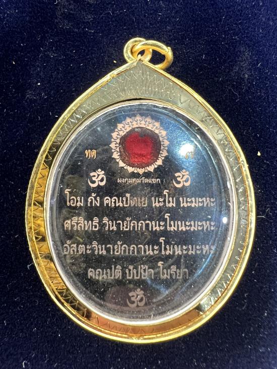 หน้ากากชุบทองคำแท้ หลังคาถาบูชาพระพิฆเนศ เจิมผงกุมกุมวัดแขก เลี่ยมกรอบไมครอน