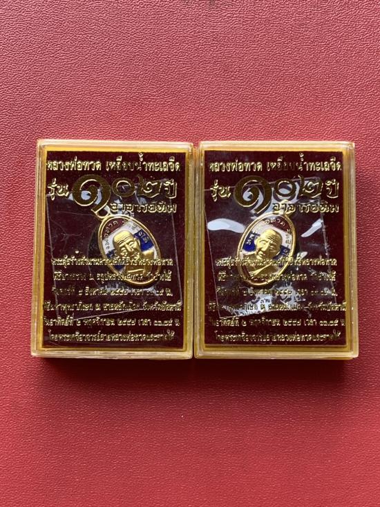 เคาะเดียวแดง เม็ดแตง 2องค์หลวงปู่ทวด รุ่น102ปีอาจารย์ทิม เนื้อชุบทองลงยาธงชาติ |