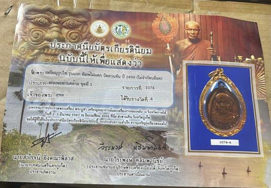 เหรียญพ่อท่านคล้าย วัดสวนขัน รุ่นแรก ปี 2498 เนื้อทองเเดง จ.นครศรีธรรมราช ติดที่ 4 ในถิ่นให้พร้อมใบประกาศ