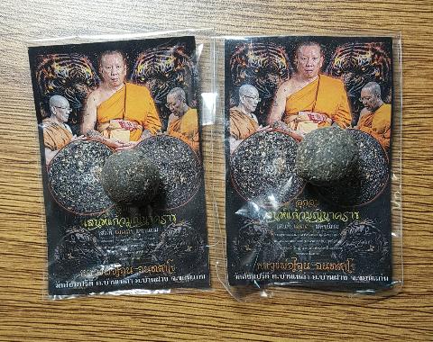 ชื่อพระเครื่อง ลูกอมเนื้อผงรุ่นแรก เสน่ห์แก้วมณีนาคราช หลวงพ่อไฉน วัดสังฆปรีดี 2ลูก พร้อมซองเดิม