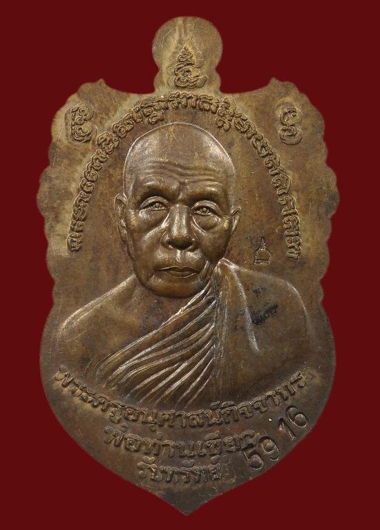 เหรียญหลวงปู่ทวด พ่อท่านเขียว กิตติคุโณ วัดห้วยเงาะ ตำบลทุ่งพลา อำเภอโคกโพธิ์ จังหวัดปัตตานี ปี พ.ศ.2556 รุ่น เลื่อนยศ ปลดหนี้ รับทรัพย์ เนื้อสัมฤทธิ์ทองแดงชนวน-เลื่อนยศ
