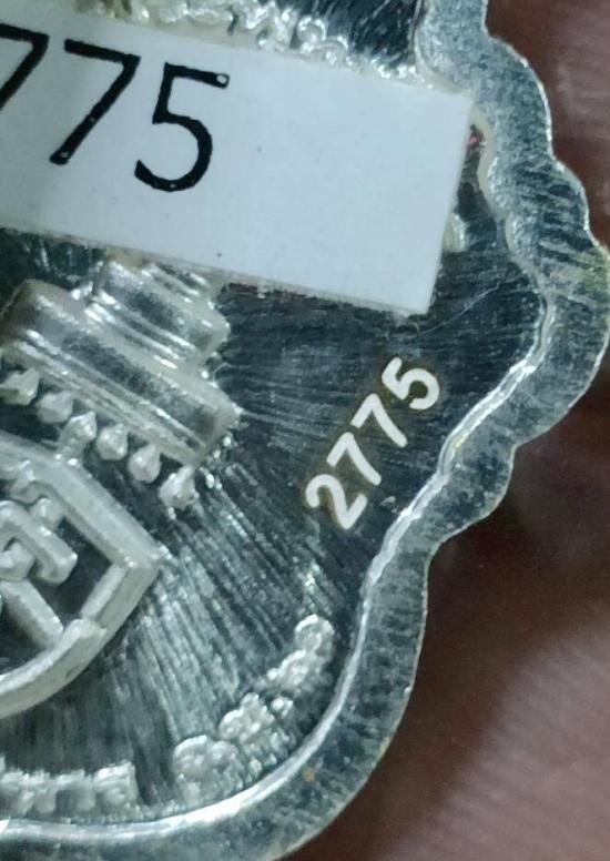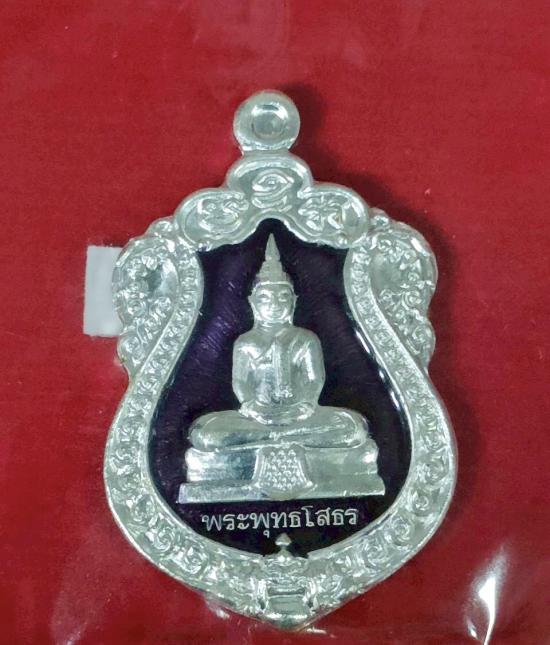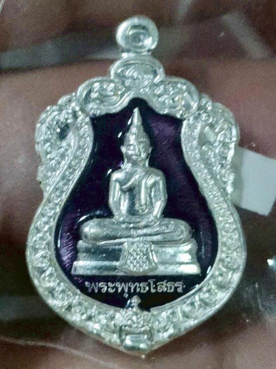 เหรียญหลวงพ่อโสธร รุ่นสร้างโรงพยาบาล เนื้อเงินลงยาม่วง สมเด็จพระสังฆราชทรงประทานอนุญาติใช้ตราประจำพระองค์ด้านหลังเหรียญ และทรงเสด็จจุดเทียนชัย ณ.วัดโสธร จ.ฉะเชิงเทรา ตอกโค๊ต หมายเลข 2775