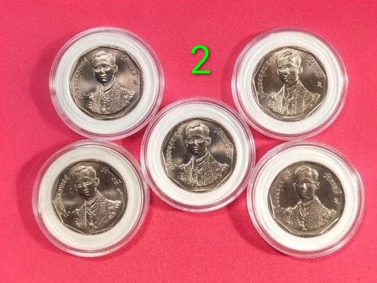 รับ 5 เหรียญ 2 บาท ปี 2539 กาญจนาภิเษก ไม่ผ่านใช้ UNC