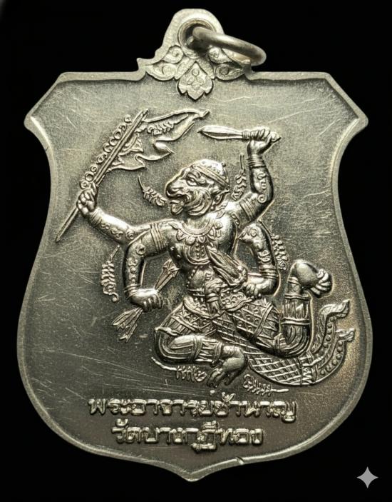 เหรียญอาร์มจักรพรรดิ์หลังหนุมาน หลวงพ่อชำนาญ ออกวัดบางกุฎีทอง จ.ปทุมธานี ปี2544 |