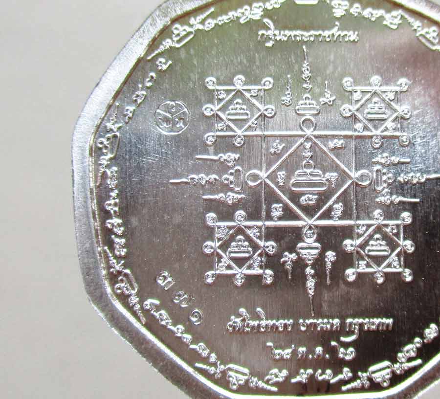 เหรียญครุฑรักษา พิมพ์ 9 เหลี่ยม อาจารย์วราห์ วัดโพธิ์ทอง กทม.ที่ระลึกกฐินพระราชทาน พ.ศ.2561 เนื้อเงินขาวจั๊วะ ตอกโค๊ต ตอกเลข สภาพสวย พร้อมกล่องเดิม !!