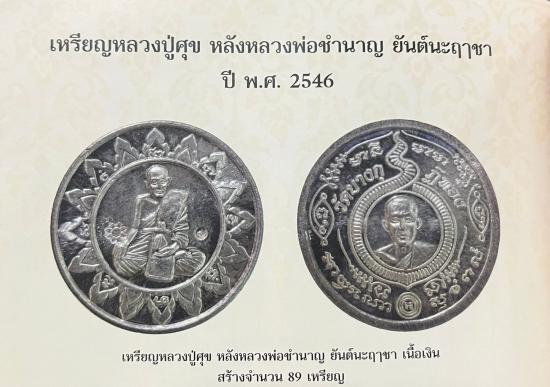 เหรียญหลวงปู่ศุข หลังหลวงพ่อชำนาญ ยันต์นะฤาชา เนื้อเงิน จำนวนการจัดสร้าง 89 เหรียญ พบเจอน้อยมากๆ