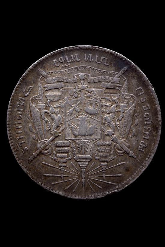 เหรียญพระจุลจอมเกล้าเจ้าอยู่หัว สมเด็จพระปรมินทรมหาจุฬาลงกรณ์ รัชกาลที่5 กรุงสยาม บาทหนึ่ง มีตอกโค๊ต