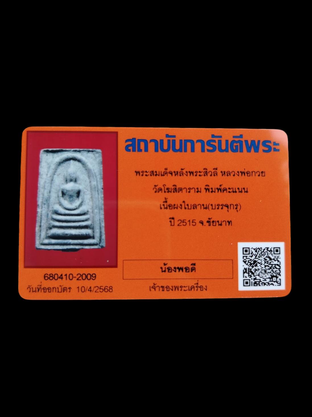สมเด็จหลังพระสิวลีหลวงพ่อกวยพิมพ์คะแนนเนื้อผงใบลานบรรจุกรุปี 15 มาพร้อมบัตรรับรอง