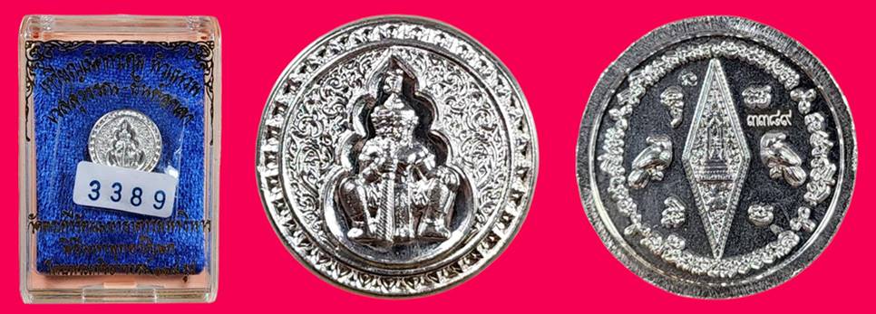 (เนื้อเงิน เลข 3389) เหรียญ เม็ดกระดุม : หัวแหวน ท้าวเวสสุวรรณ หลังยันต์อกเลาพระพุทธชินราช -วัดพระศรีรัตนมหาธาตุวรมหาวิหาร จัดสร้าง(ขนาดเส้นผ่าศูนย์กลาง 1 เซนติเมตร ) เป็นเหรียญทรงกลม มีองค์เทวรูปท้าว