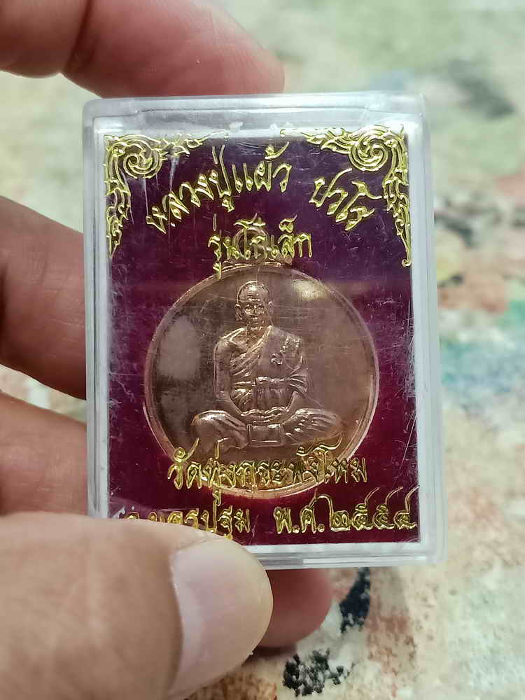วัดใจ 100 เหรียญรุ่นโก๋เล็ก หลวงปู่แผ้ว ปวโร วัดรางหมัน ออกวัดทุ่งกระพังโหม จ.นครปฐม 2554 ทองแดง กล่องเดิม