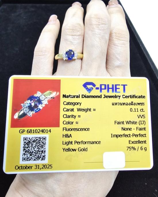 เคาะเดียววัดใจ *แหวนทองฝังเพชรสวยสภาพดี เพชร 6เม็ดรวมกันน้ำหนัก 0.11 ตัง Yellow Gold 75%/6g ไซส์เบอร์ 51(16.3mm) **พร้อมใบเซอร์สถาบัน G-Phet** |