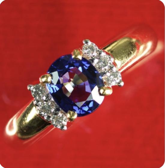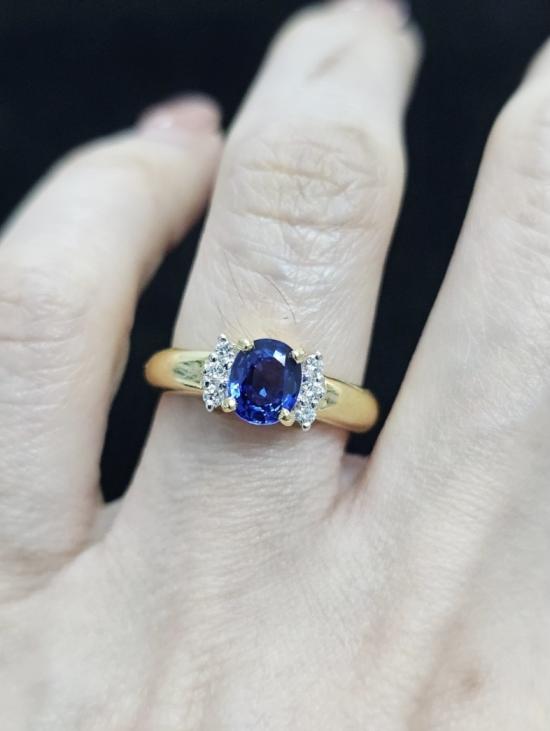 แหวนเพชรแท้ เม็ดกลางพลอยสีสวยมาก สภาพสวยไม่มีตำหนิ