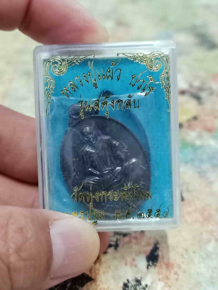 วัดใจ 100 เหรียญรุ่นสดุ้งกลับ หลวงปู่แผ้ว ปวโร วัดรางหมัน ออกวัดทุ่งกระพังโหม จ.นครปฐม 2554 ทองแดงรมดำ กล่องเดิม