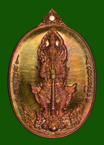รายละเอียด เหรียญท้าวเวสสุวรรณจาตุมหาราชิกา ครูบาจันทร์ โชติโก วัดน้ำแป้ง จ.พะเยา เนื้อทองแดง หมายเลข 2007 (ผลรวม = 9) พร้อมกล่องเดิมค่ะ