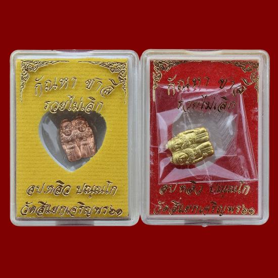 ชุด 2 องค์...กัญหา - ชาลี รุ่น รวยไม่เลิก เนื้อทองแดง + เนื้อฝาบาตร วัดสี่แยกเจริญพร ปี 2561 (หลวงพ่อเล็ก วัดท่าขนุน ปลุกเสก) พระอยู่ในซีนพลาสติกเดิมยังไม่ได้แกะ มีกล่องเดิม สภาพพระตามรูปที่ลงทุกประการ (ขนาดสูงประมาณ 1 ซม.)