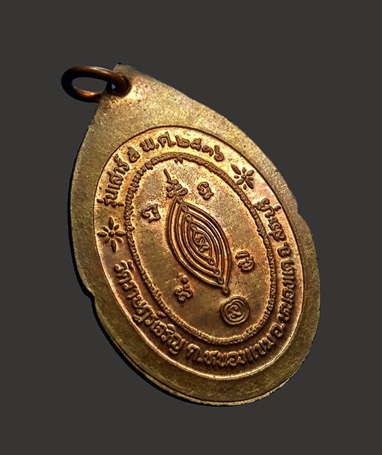 และเหรียญที่สร้างความโด่ง ดังให้หลวงพ่อมากเป็นพิเศษ คือ เหรียญรุ่นแทงคอหมู เป็นเหรียญรูปหลวงพ่อนั่งสมาธิเต็มองค์ อยู่ในซุ้มใบเสมา คล้ายๆ กับเหรียญรุ่นนั่งพานของพระเกจิอาจารย์บางท่าน เหรียญนี้ออกในโอกาสบูรณปฏิสังขรณ์วัด ปีใดไม่แน่ชัด