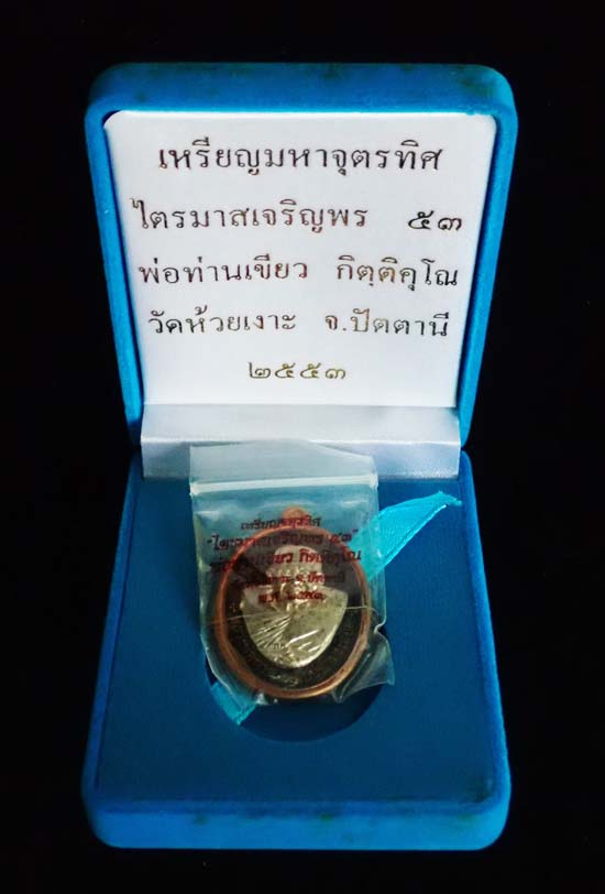 เหรียญมหาจตุรทิศ ไตรมาสเจริญพร 53 หลวงปู่ทวดเหยียบน้ำทะเลจืด พ่อท่านเขียว วัดห้วยเงาะ จังหวัดปัตตานี