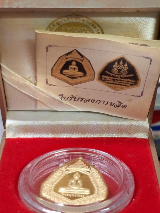 เหรียญหลวงพ่อพระพุทธโสธร ฉัตรแปดเหลี่ยม รุ่น สร้างพระอุโบสถ เนื้อทองแดงนอก ขัดเงาพ่นทรายเคลือบทอง ตอกโค้ดและหมายเลข