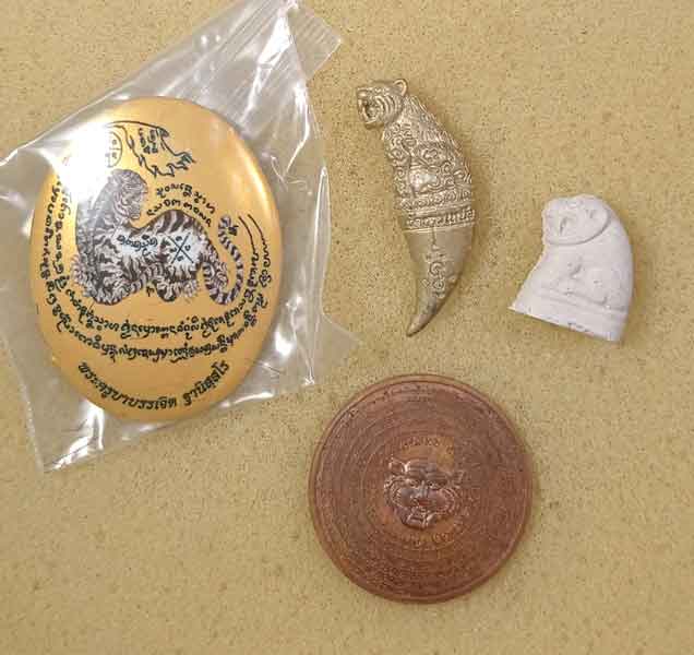 ล็อกเก็ตเสือ พระครูสมุห์ บรรเจิด + เขี้ยวเสือ หลวงพ่อหวล วัดชาวเหนือ ราชบุรี + เหรียญบารมี 30 ทัศน์ หลวงพ่อศรีนวล วัดเพลง จ.นนทบุรี + เสือผงหลวงพ่อปาน วัดคลองด่าน