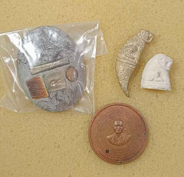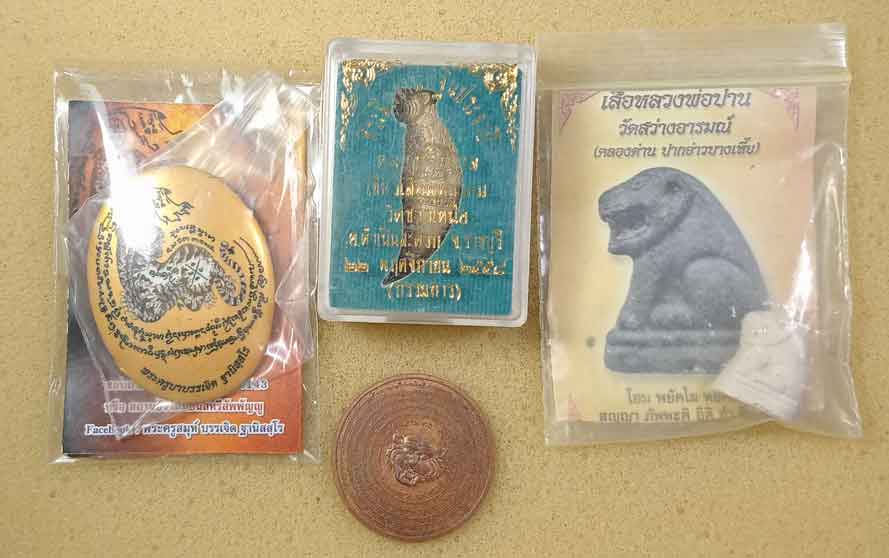 ชื่อพระเครื่อง ล็อกเก็ตเสือ พระครูสมุห์ บรรเจิด + เขี้ยวเสือ หลวงพ่อหวล วัดชาวเหนือ ราชบุรี + เหรียญบารมี 30 ทัศน์ หลวงพ่อศรีนวล วัดเพลง จ.นนทบุรี + เสือผงหลวงพ่อปาน วัดคลองด่าน