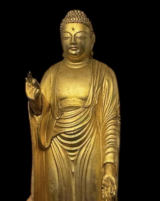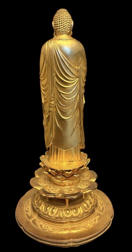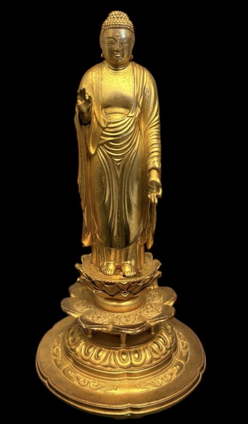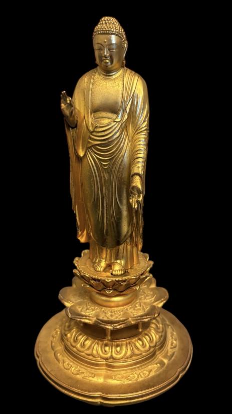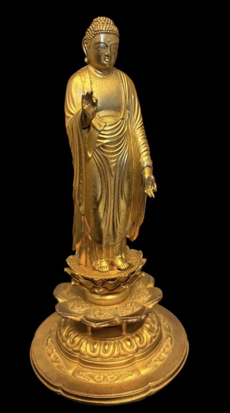 พระอมิตาภพุทธะ (Amitābha Buddha) เนื้อโลหะกะไหล่ทอง สูง 7.5 นิ้ว ฐาน 3.8 นิ้ว