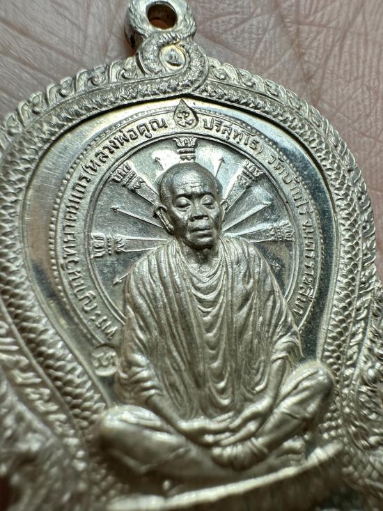 หลวงพ่อคูณ นั่งพานบ้านคลอง เนื้อเงิน ปี 2537 เลข 958 (เลข 3 หลัก สวยเดิมครับ)