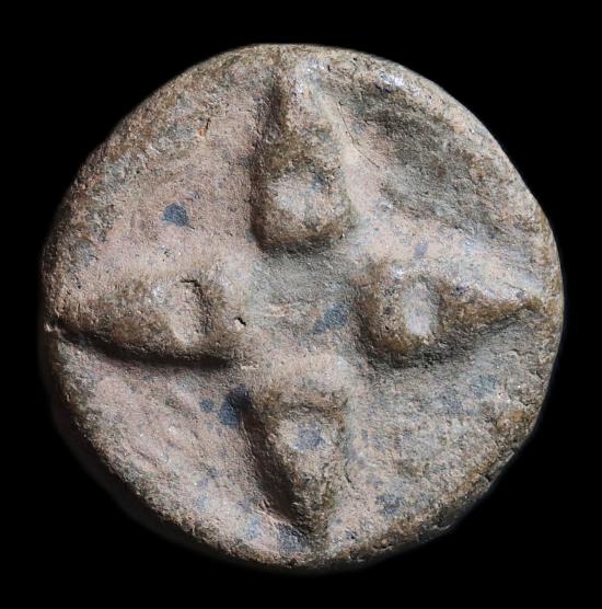 พระปิดตาสี่ทิศ พิมพ์เล็ก หลังยันต์ เนื้อดิน กรุวัดคูยาง จ.กำแพงเพชร