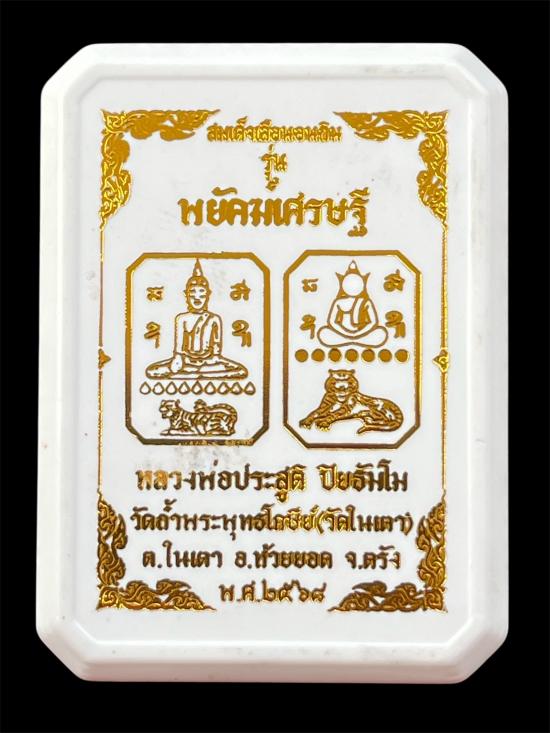 สมเด็จเสือนอนกิน รุ่น "พยัคฆ์เศรษฐี" หลวงพ่อประสูติ ปิยธัมโม วัดถ้ำพระพุทธโกษีย์ (ในเตา) จ.ตรัง เนื้อดินเผาอุดมวลสารวัดท่าสะแบง No.4 พร้อมกล่องเดิมครับ