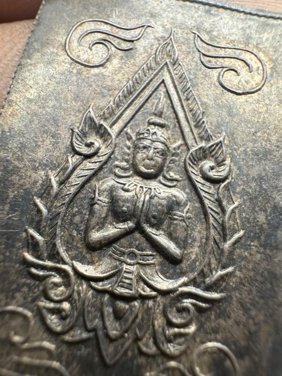 แผ่นปั้มเทพพนมมือ เนื้อเงินแท้ ไม่ทราบเกจิสร้างค่ะ