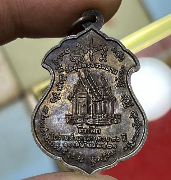 เหรียญหลวงปู่ธูป หลังโบสถ์ วัดแคนางเลิ้ง ปี2521 เนื้อทองแดงรมดำ ผิวเดิม สวยรุ้ง