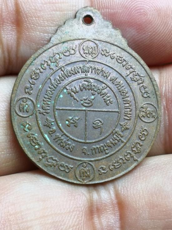 เหรียญยันต์ "บุญคุ้มตัวคุ้มเรือน" วัดหนองสองห้องผาสุการาม จ.กาญจนบุรี เนื้อทองแดงสภาพตามรูป ราคาเบาๆ