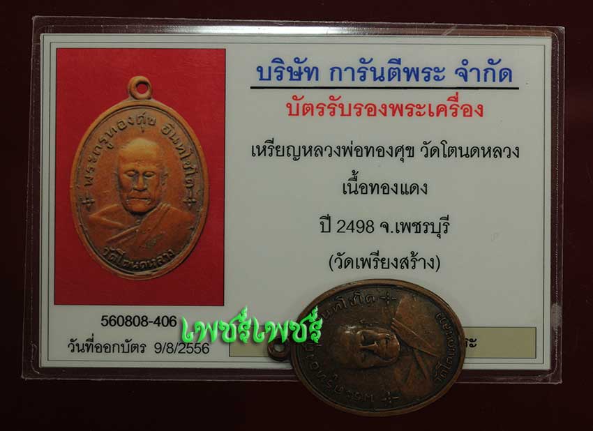 เหรียญ หลวงพ่อทองศุข วัดโตนดหลวง เนื้อทองแดง ปี2498 จ.เพชรบุรี (วัดเพรียงสร้าง)สภาพสวย คมชัด พร้อมบัตรรับรองพระแท้จากการันตีพระสบายใจได้พระแท้แน่นอน ค่ะ