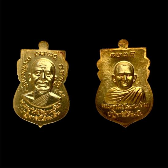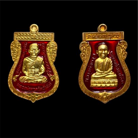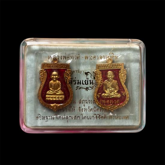 ชุดกรรมการอุปถัมภ์ รุ่น ปาฏิหาริย์ใต้ร่มเย็น ( 2 พิมพ์ 2 เหรียญ เนื้อมหาชนวนกะไหล่ทองลงยาแดง ) หลวงพ่อทวด พระอาจารย์ทิม ปี 2557 รวม 2 เหรียญ พร้อมกล่อง สภาพสวย