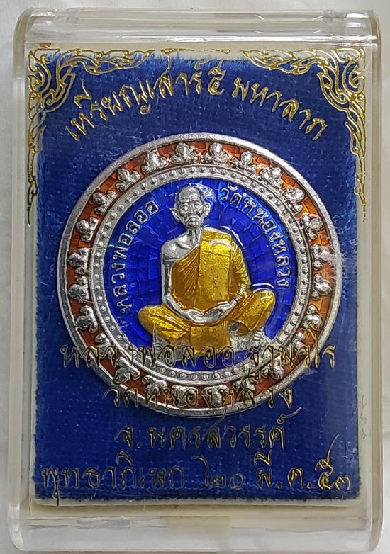 หลวงพ่อลออ วัดหนองหลวง เหรียญเสาร์ ๕ มหาลาภ ปี 2553 เนื้อเงินลงยา เลข 416 กล่องเดิม