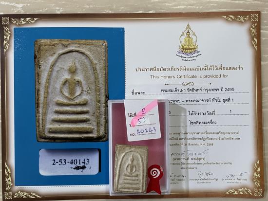 ชื่อพระเครื่อง (เคาะแดง3900) แช้น้ำมนต์ สร้างปี 2495 สภาพสวย สมบูรณ์ ไม่หักไม่ซ่อม รับประกันพระแท้ ดูง่าย ใบประกาศรางวัลที่2งานสมาคม