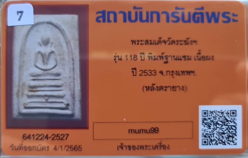 ## สมเด็จวัดระฆัง อนุสรณ์ 118ปี พ.ศ.2533 พิมพ์ฐานแซม "พระสวยเดิมไม่ผ่านการใช้.หลังปั้มตรายาง...พร้อมบัตรรับรอง.""รับประกันแท้ตลอดฃีพและแท้ตามมาตรฐานสากล....... อนาคตดี ถูกๆเลยครับ.... ราคายังไม่แรง.. |