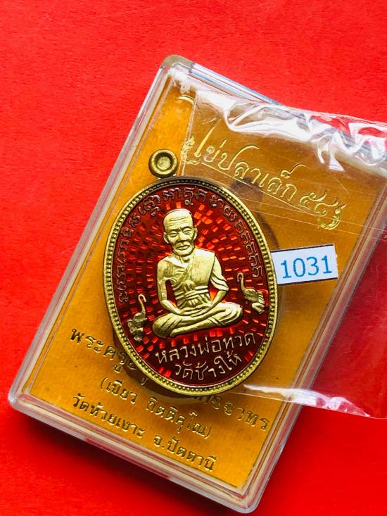 เหรียญหลวงพ่อทวดหลังพ่อท่านเขียว วัดห้วยเงาะ ปัตตานี พิมพ์ไข่ปลาเล็ก ๕๘ เนื้อทองทิพย์ลงยาแดง หมายเลข 1031 ตอกโค๊ดด้านหลัง พุทธคุณแคล้วคลาดปลอดภัย พิธีดี รับประกันตามกฎ เคาะเดียวแดง