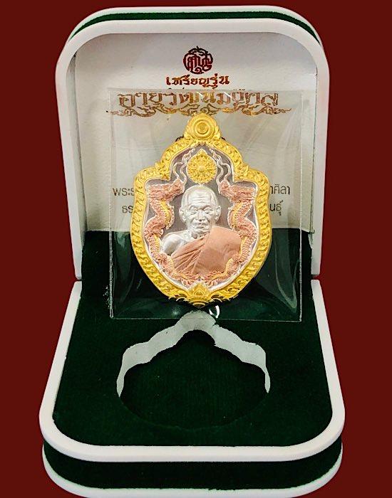 หลวงปู่มหาศิลา อายุวัฒนะมงคล81 มังกรคู่ เนื้อเงิน สามกษัตริย์ จมูก100 เลข117 =9 กล่องเดิม สภาพคัดสวยๆ