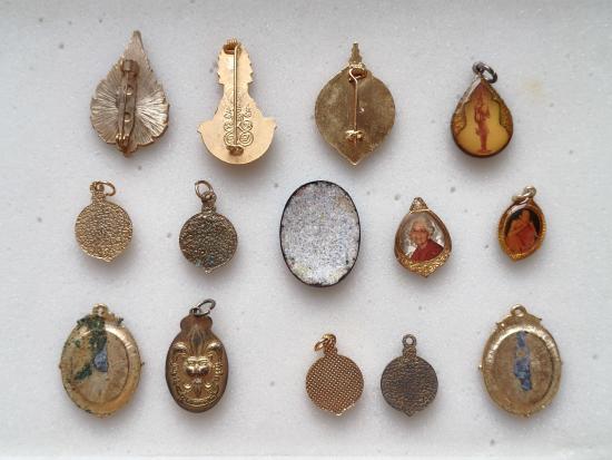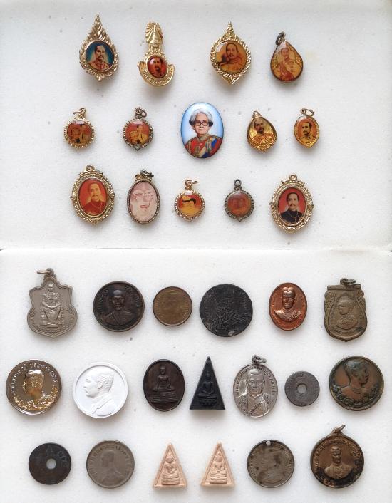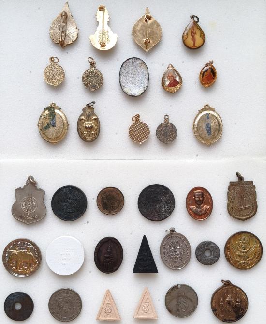 เคาะเดียว.เข็มกลัด,ล็อกเก็ต,เหรียญ,เนื้อผง รวม 33 ชิ้น บรรยายด้วยภาพครับ